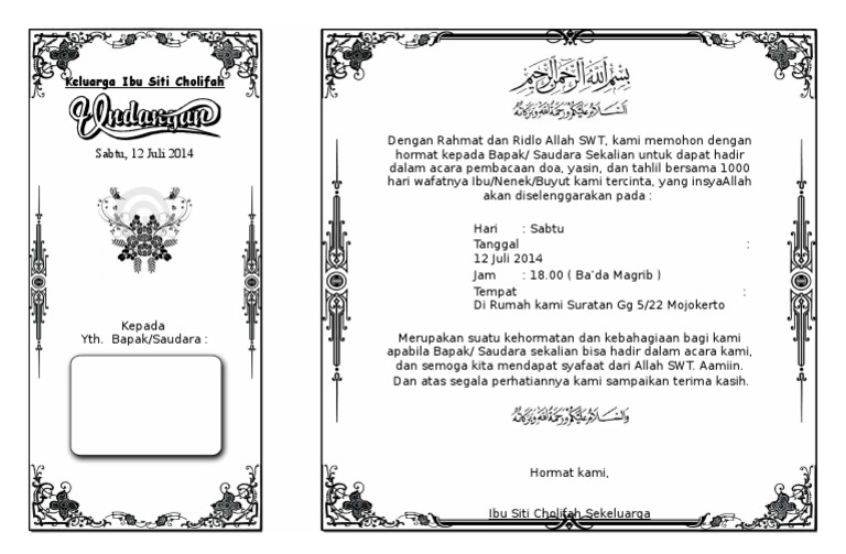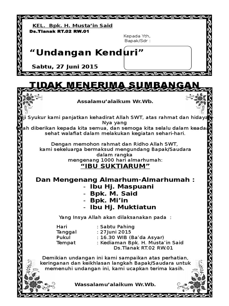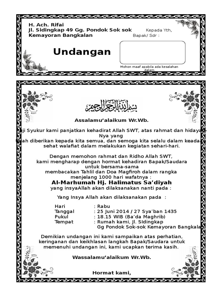 Contoh Undangan Tahlilan 1000 Hari Meninggalnya.doc - [DOC Document]