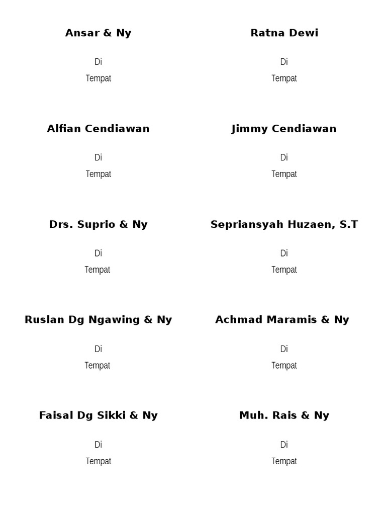 Kartu Nama Undangan Pernikahan - mypic.asia