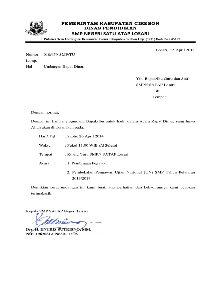 contoh Surat Undangan Rapat Dinas | Undangan, Teks lucu, Surat