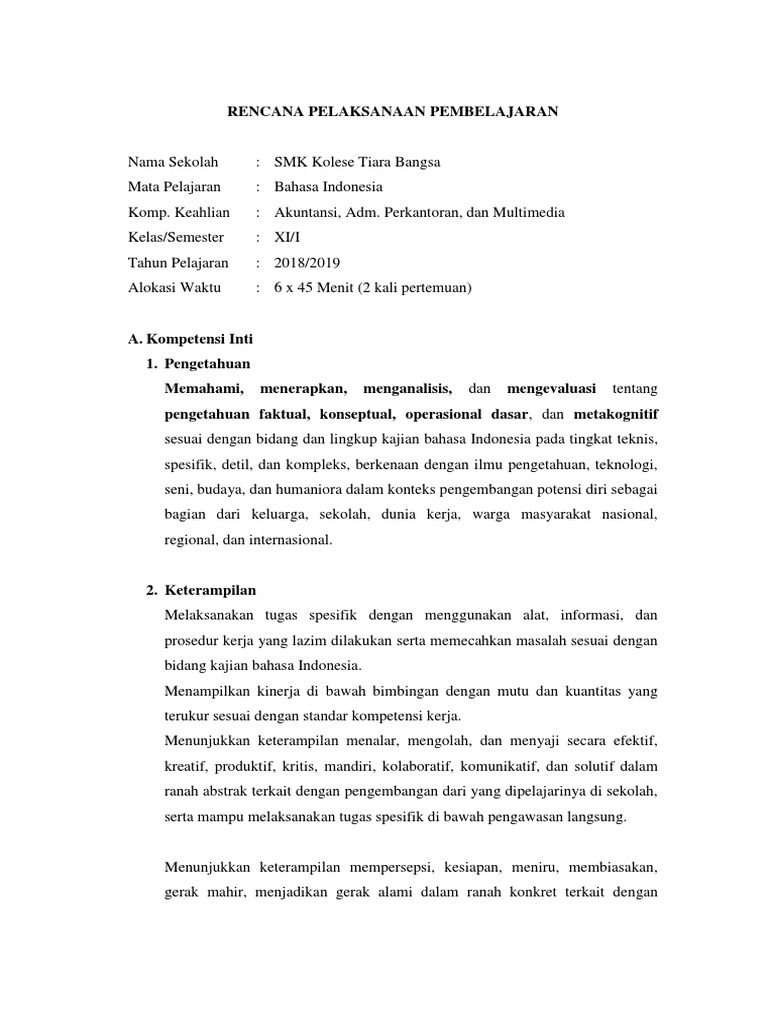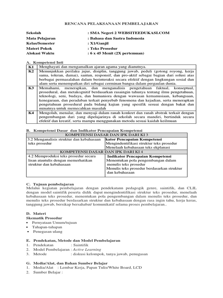 RPP B. Indo Kelas 11 rev 2018 3.2 dan 4.2 Teks Prosedur.docx - RENCANA PELAKSANAAN PEMBELAJARAN Sekolah SMK Negeri 1 Lumut Mata Pelajaran Kelas/Semester | Course Hero