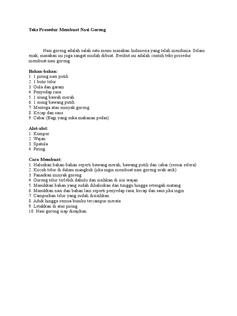 Contoh Teks Prosedur Kompleks Membuat Makanan Nasi Goreng - Dapatkan Contoh
