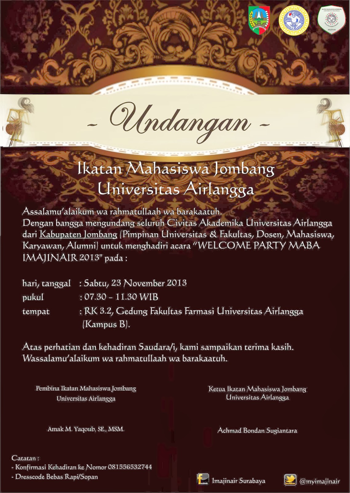 IMAJINAIR | Ikatan Mahasiswa Jombang di Universitas Airlangga: UNDANGAN WELCOME PARTY MABA IMAJINAIR 2013