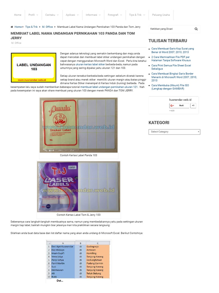 Cara Membuat Label Undangan Otomatis 103 Dan 12…