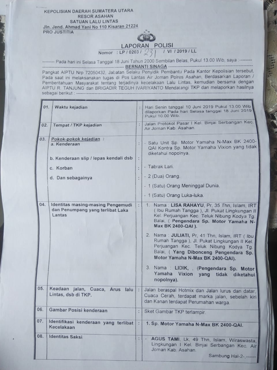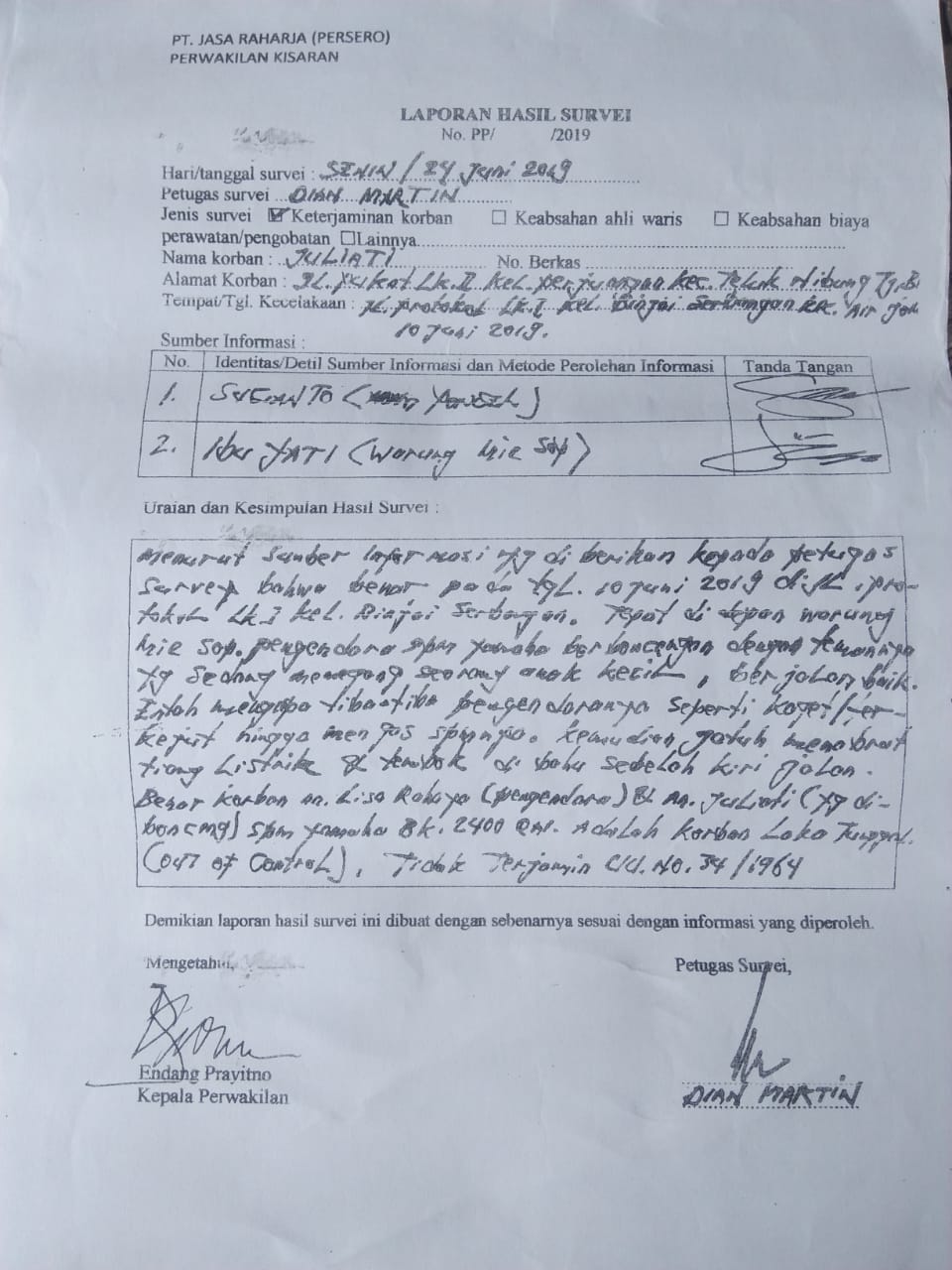 Tak Ingin Keluarkan Cleam Asuransi Kecelakaan, Oknum PT. Jasa Raharja (Persero) Perwakilan Kisaran Diduga Keluarkan Hasil Survey Dan Tandatangan Palsu - Media Nusantara