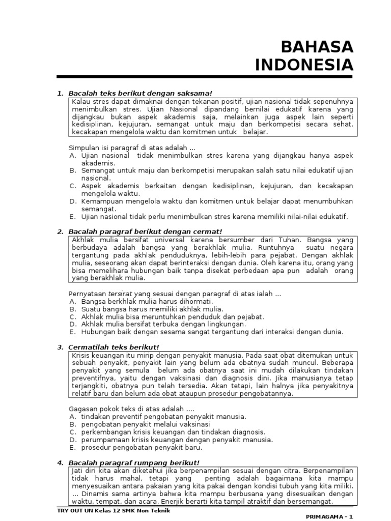 DOC) UN Bahasa Indonesia Kelas XII SMK TA 2015/2016 dan Kunci Jawaban | teguh saputra - Academia.edu