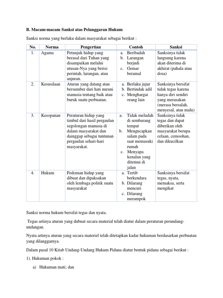 B. Macam-macam Sanksi atas Pelanggaran Hukum