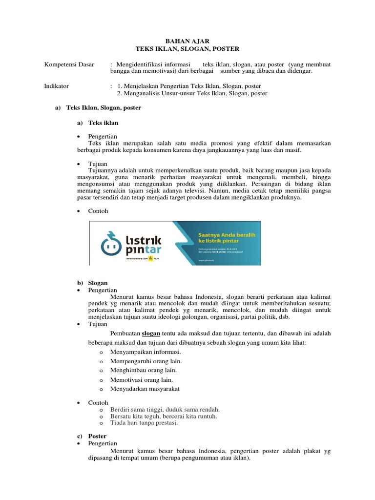 Teks Iklan Slogan Poster - Materi Bahasa Indonesia Kelas 7 Smt 1 Bab 2