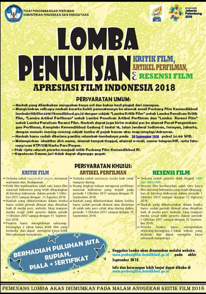 FilmdanMusikSaya on Twitter: “Halo #SahabatFilm, lomba penulisan kritik, artikel & resensi film diperpanjang hingga tgl 30 Sept 2018. Yuk, daftar… #AFI2018… https://t.co/ax5W9qAE09”