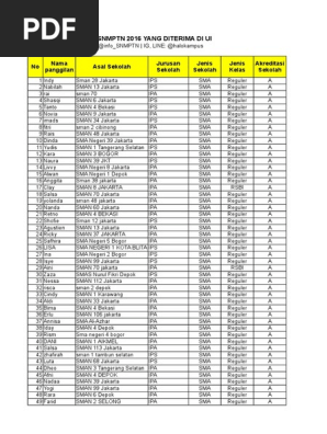 Data SNMPTN UI 2016 by @Halokampus | Indonesia