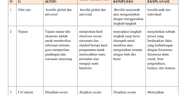 Ilmu Kuadrat: Tabel Perbandingan Teks Eksposisi (KTSP) dengan Teks Eksplanasi (K13), Prosedur Kompleks (K13), dan Teks Laporan Hasil Observasi (K13)