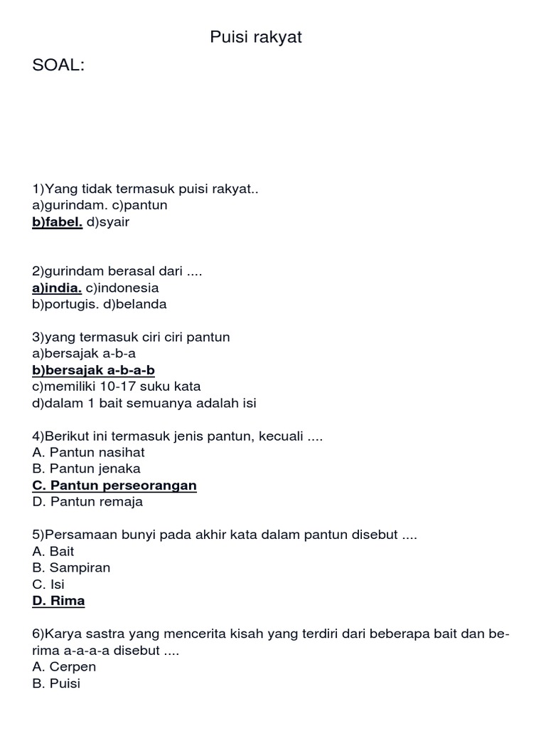 Contoh Soal Puisi Rakyat (Pantun, Syair, Gurindam) - Kelas VII …