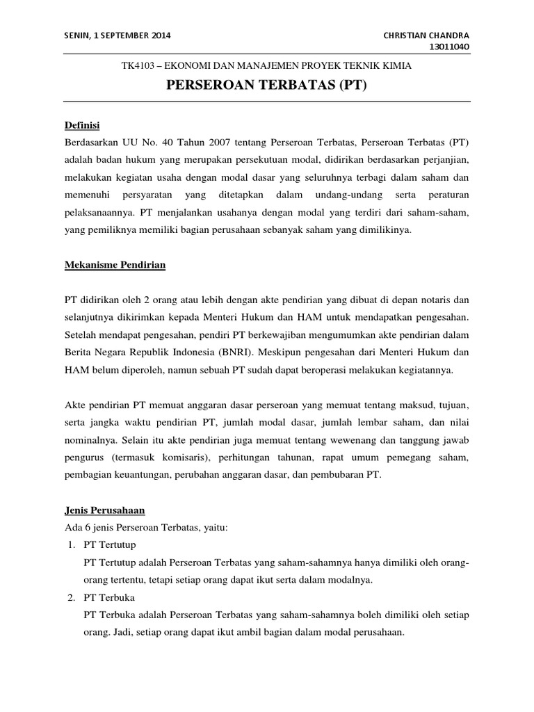 PERSEROAN TERBATAS (P.T.) - ppt download