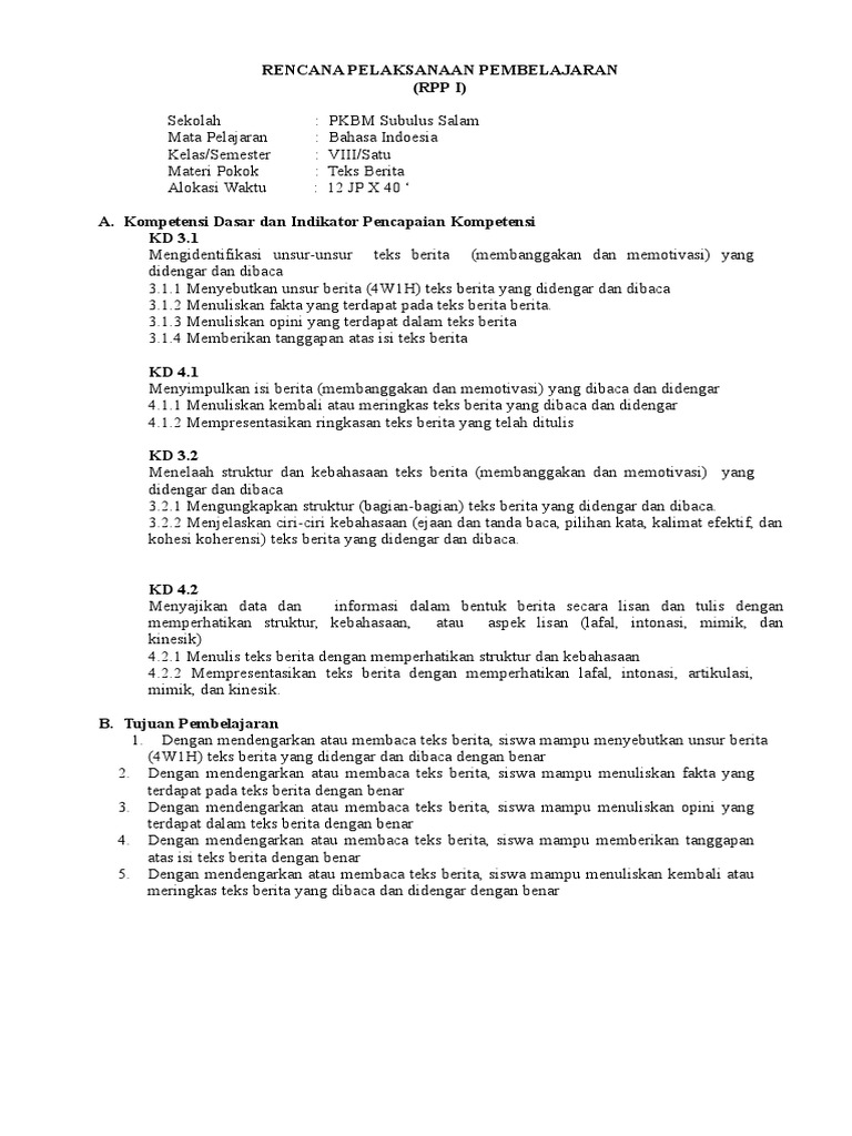 DOC) RPP BAHASA INDONESIA TUGAS TERAKHIR | ericha erc - Academia.edu