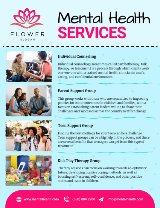 Brosur Layanan Kesehatan Mental Biru Templat | PosterMyWall