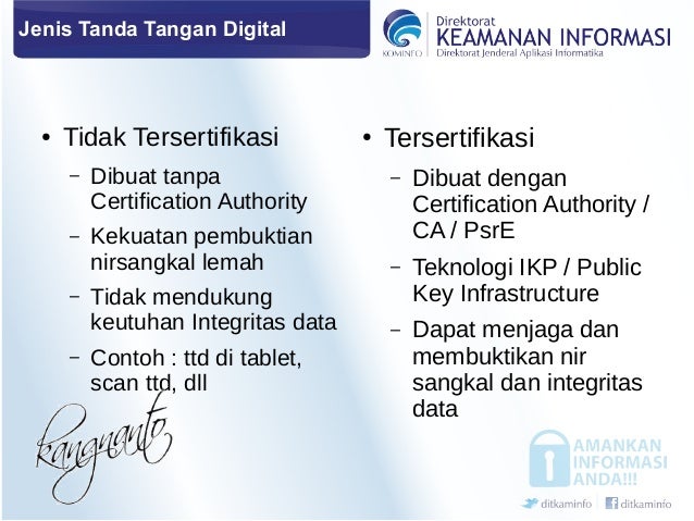 BADAN SIBER DAN SANDI NEGARA on Twitter: “#TandaTanganElektronik yang Tidak Tersertifikasi dapat disalin untuk memalsukan dokumen oleh pihak yg tidak bertanggungjawab, sehingga sulit dibuktikan keasliannya. #SertifikasiElektronik… https://t.co/mEuZPPcKlA”