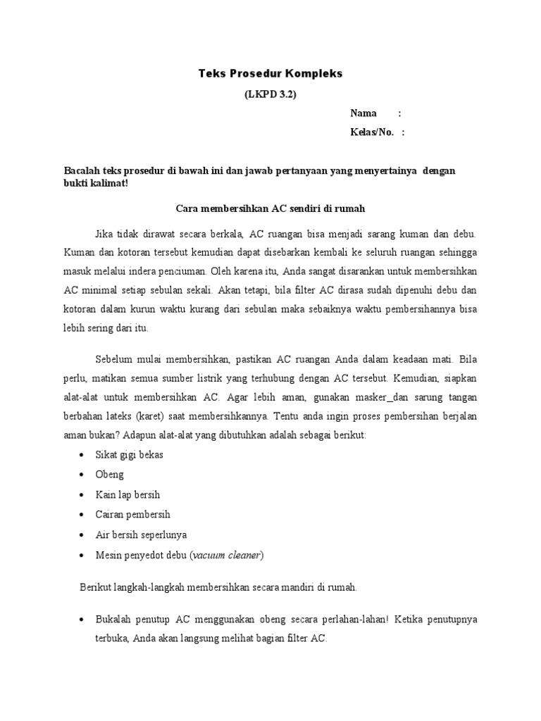 Buatlah sebuah teks prosedur dengan struktur lengkap!(Tema: Cara Memasang A.C) - Brainly.co.id