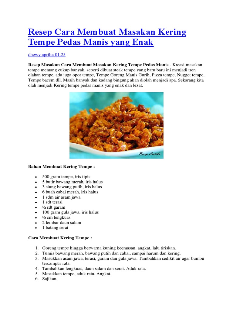 Resep Praktis Kering Tempe Kacang - Womantalk