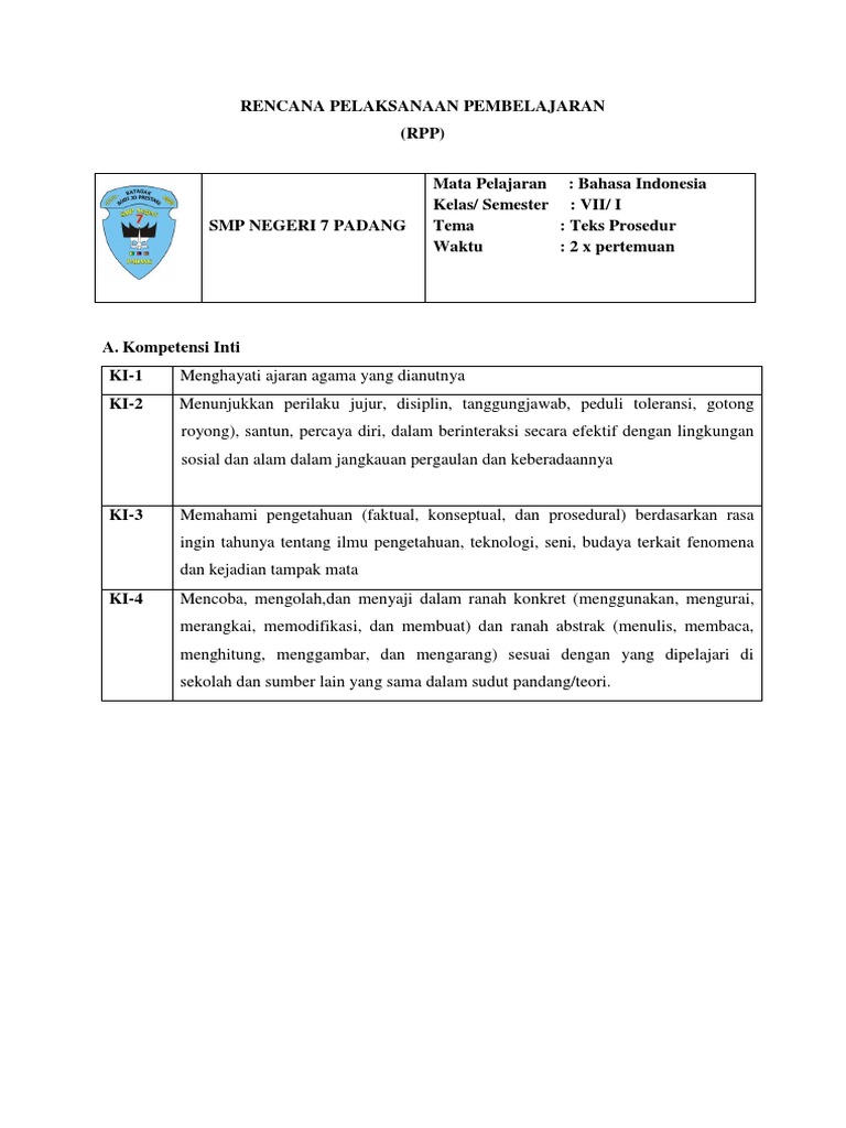 DOC) RPP BAHASA INDONESIA KELAS VII BAB 3 TEKS PROSEDUR.docx | Asisten Nur - Academia.edu
