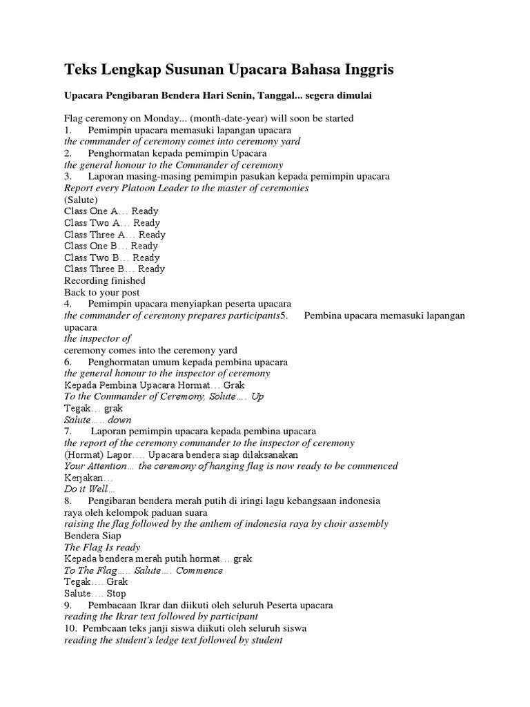 Teks Upacara : Contoh Susunan Upacara Bendera Hari Senin Di Sekolah Lengkap | TutorialBahasaInggris.Co.Id