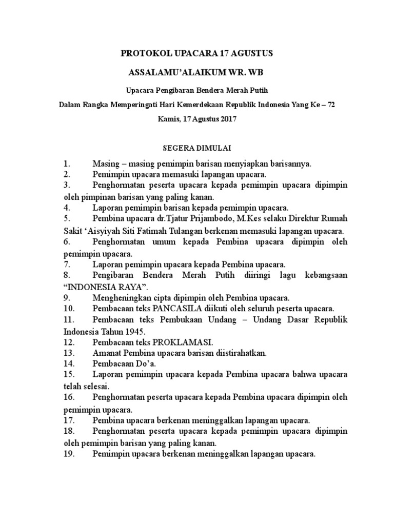 Contoh Susunan Acara Upacara Peringatan Proklamasi Kemerdekaan Republik Indonesia 17 Agustus - Kabar Lumajang