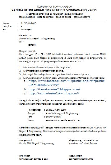 Contoh Surat Undangan Rapat Panitia Reuni Contoh Isi - Cute766