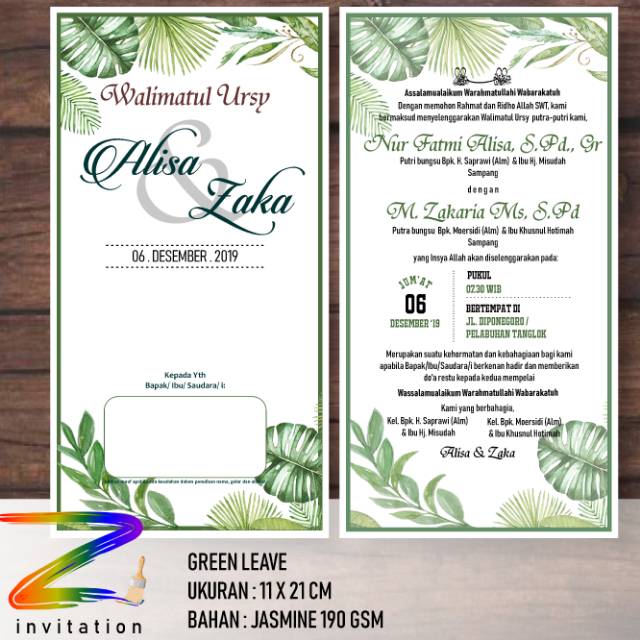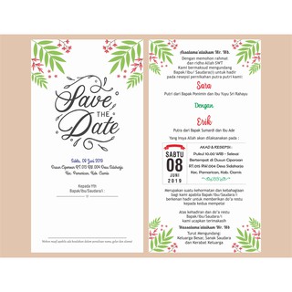 Undangan pernikahan wedding invitation murah selembar bolak balik tanpa lipatan green leave | Shopee Indonesia