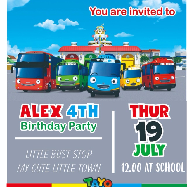 Jual Undangan ulang tahun / ultah custom tayo little bus - 7x10cm - Kab. Bogor - cibidesign | Tokopedia