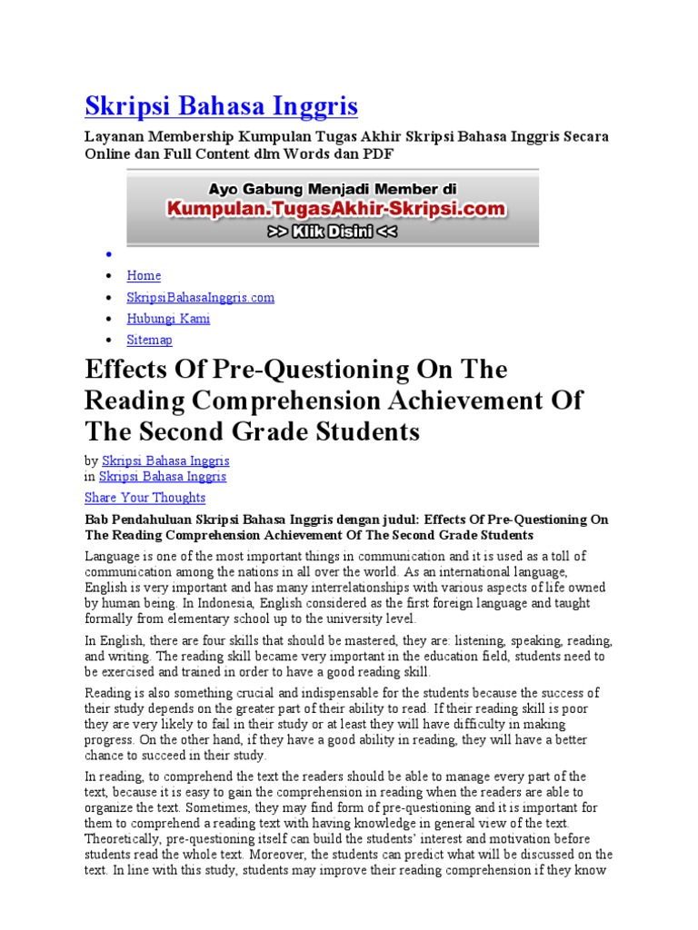 DOC) Kumpulan Judul Skripsi Pendidikan Bahasa Inggris Tentang Reading | ahmad zainal - Academia.edu
