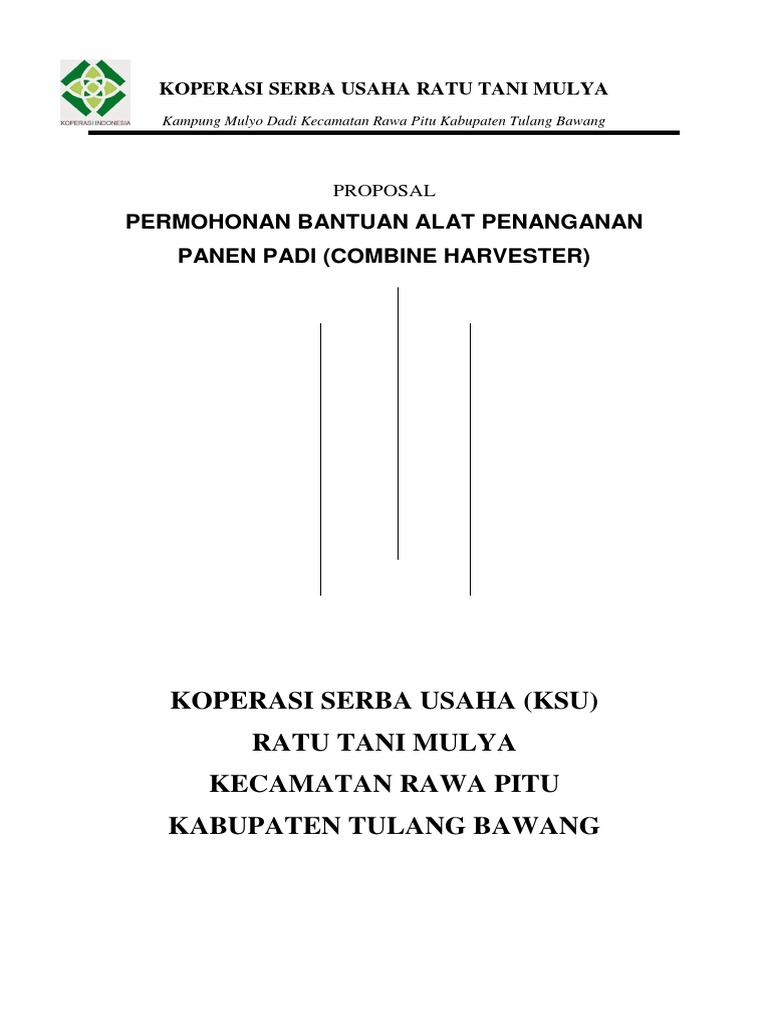 Contoh Proposal Permohonan Bantuan Mesin Pemanen Padi Combine Harvester - Berbagi Contoh Proposal