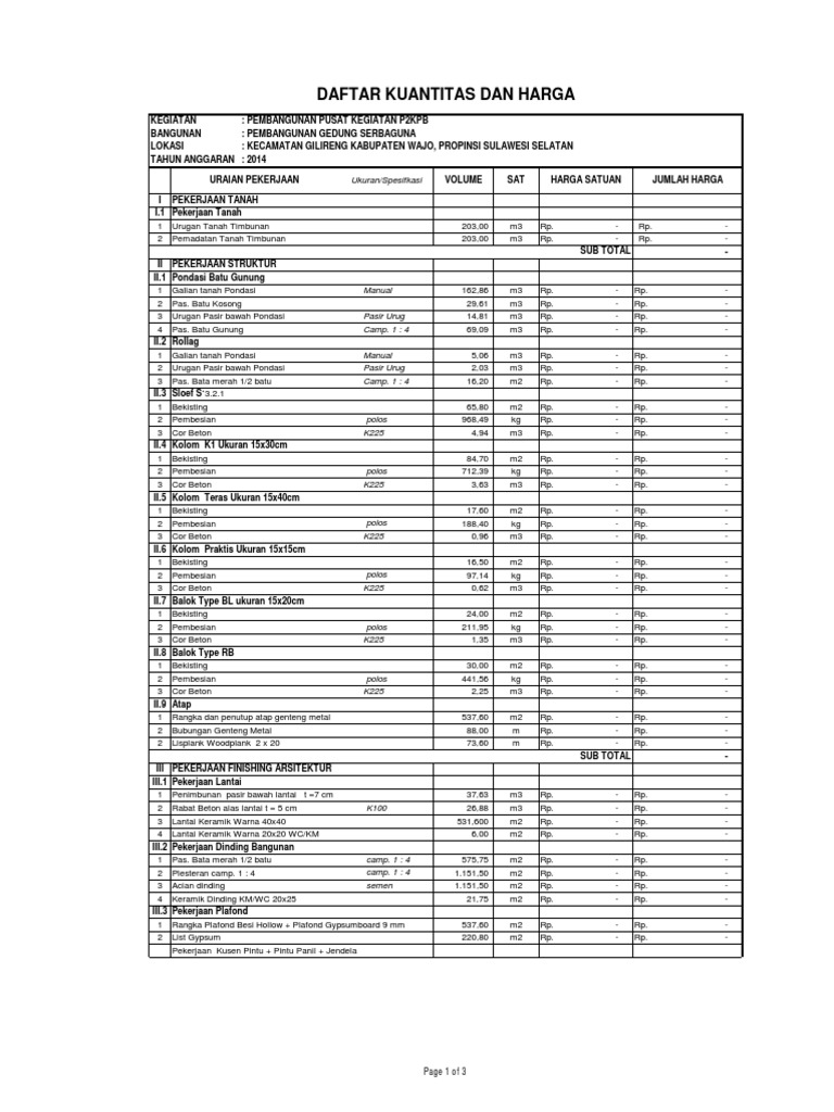 RAB Gedung Serbaguna