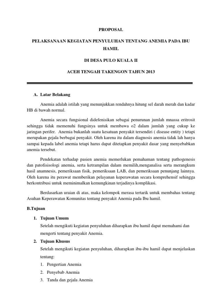 Contoh proposal gambaran pengetahuan ibu tentang anemia pada ibu hamil