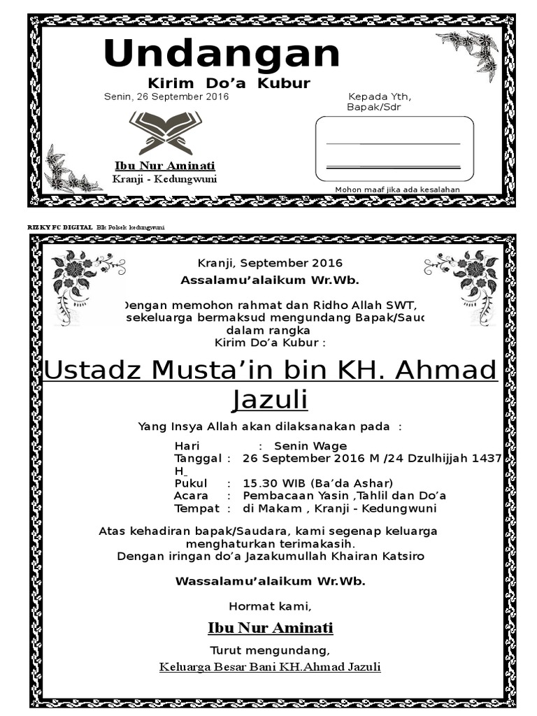 Contoh Surat Undangan Tahlil - Murad Maulana