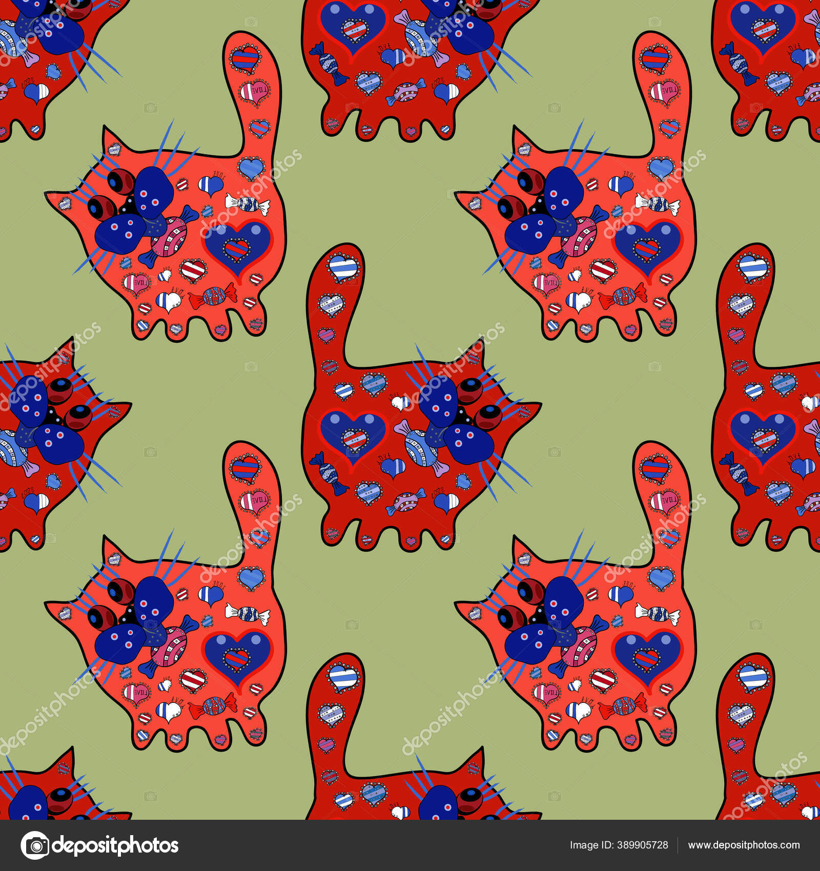 Gambar Pada Versicolours Biru Netral Dan Merah Slogan Cinta Kucing — Stok Vektor © Valera197615 #389905728