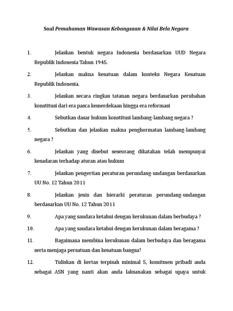 Soal Wawasan Kebangsaan Dan Bela Negara
