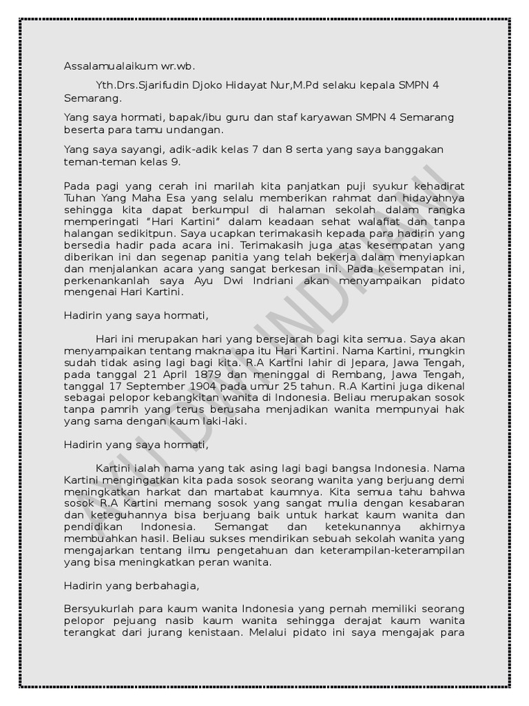 teks PIDATO KARTINI SMP