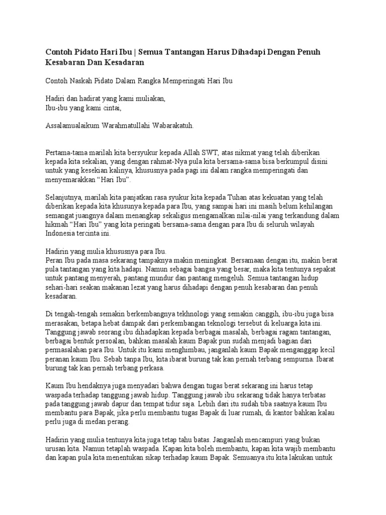 DOC) Contoh Pidato Tentang Ibu Islami | Nina Rosalina - Academia.edu