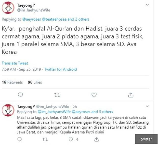 Harta, Tahta, Jia on Twitter: “gue dulu follow @ustadchen karena gue mikirnya dia ustad tapi kpopers gitu dan berharap isi TL-nya tentang ceramah tapi diselipin info kpop”