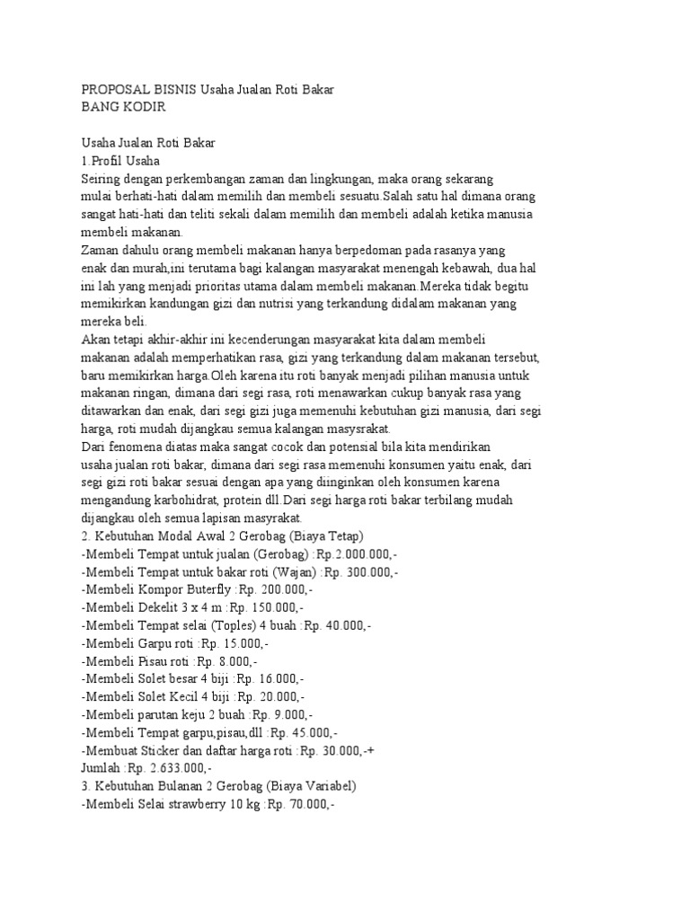 DOC) Proposal Usaha Roti Bakar Venak | Adi Ginanjar Kusuma - Academia.edu