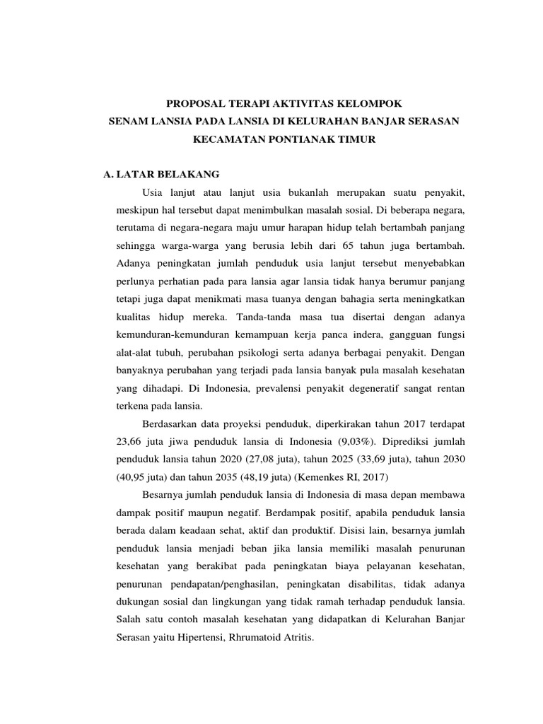 DOC) PROPOSAL TERAPI MODALITAS SENAM LANSIA TAHAP 2 | Agus Pranata - Academia.edu