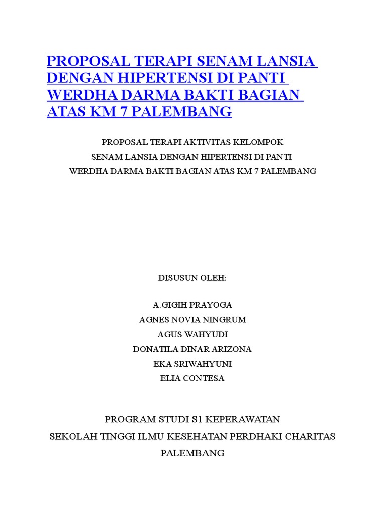 Proposal Terapi Senam Lansia Dengan Hipertensi Di Panti Werdha Darma Bakti Bagian Atas Km 7 Palembang
