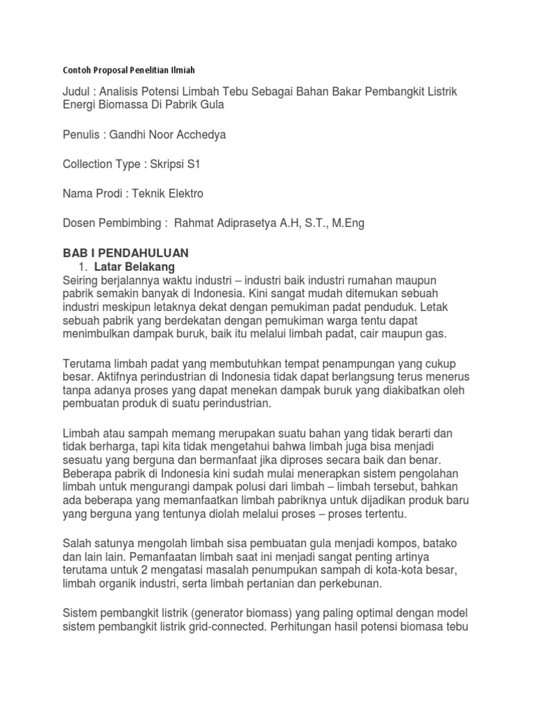 Contoh Proposal Penelitian Ilmiah