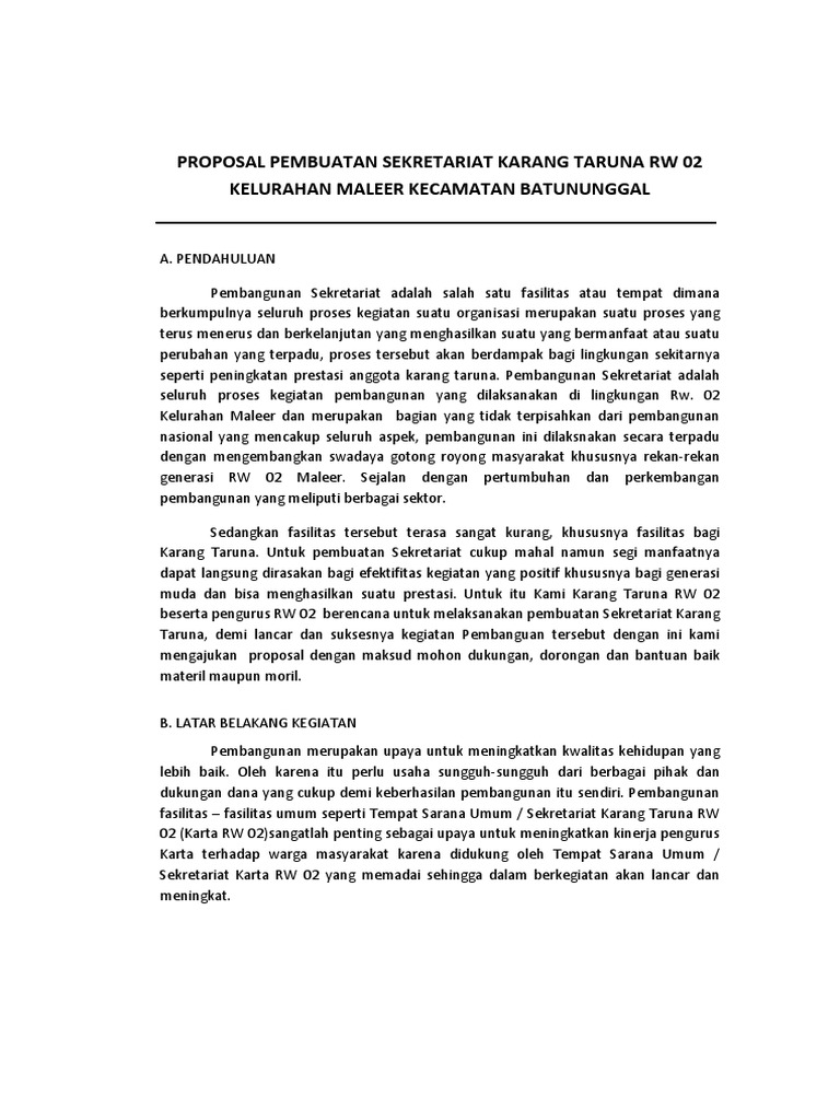 DOC) proposal permohonan kelengkapan sarana dan prasaran karang taruna Tunas Karya Bhakti rw 07 Ciputat | reza faneli - Academia.edu