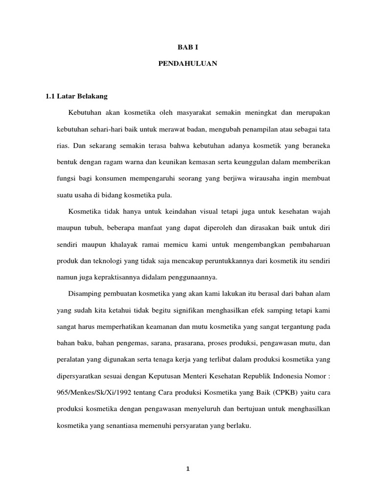 DOC) PROPOSAL PEMBUATAN KOSMETIK ALAMI | ade dwi - Academia.edu