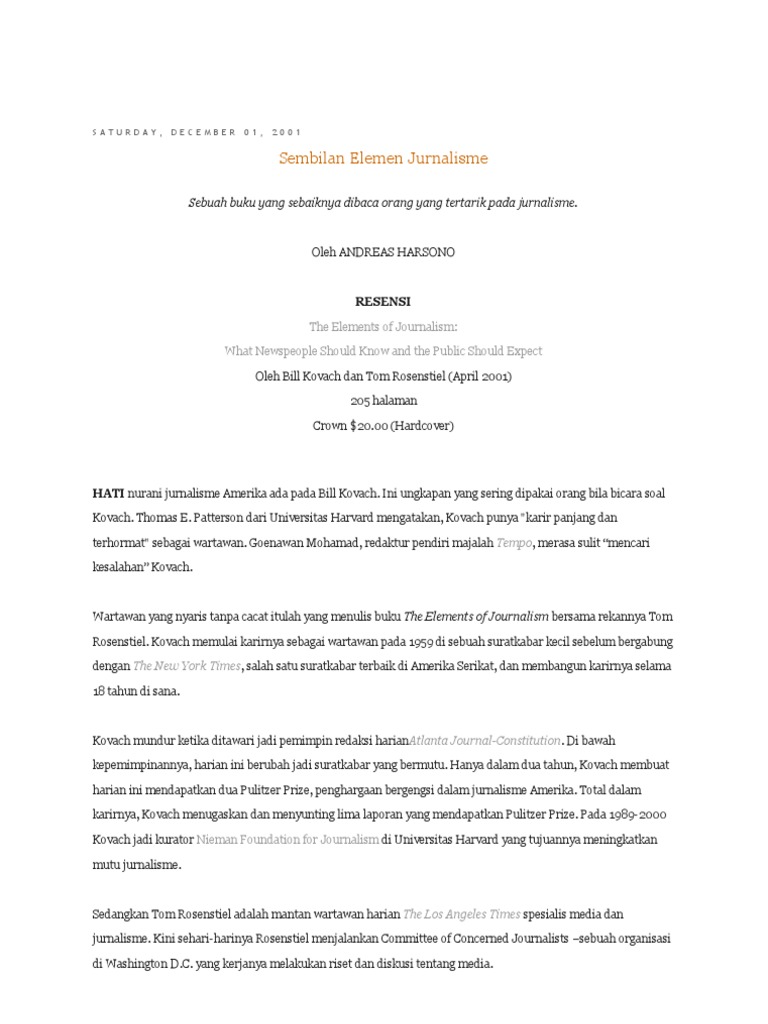 01 Sembilan Elemen Jurnalisme Oleh Andreas Harsono