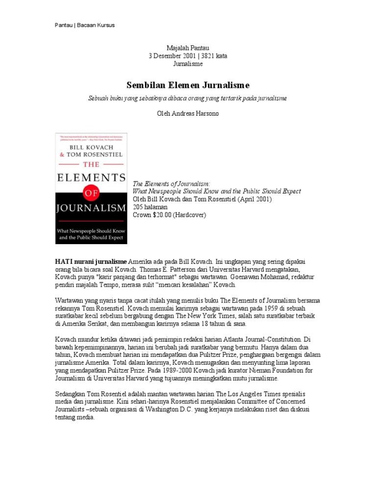 PDF) Sembilan Elemen Jurnalisme (Plus Elemen ke-10) | Satrio Arismunandar - Academia.edu
