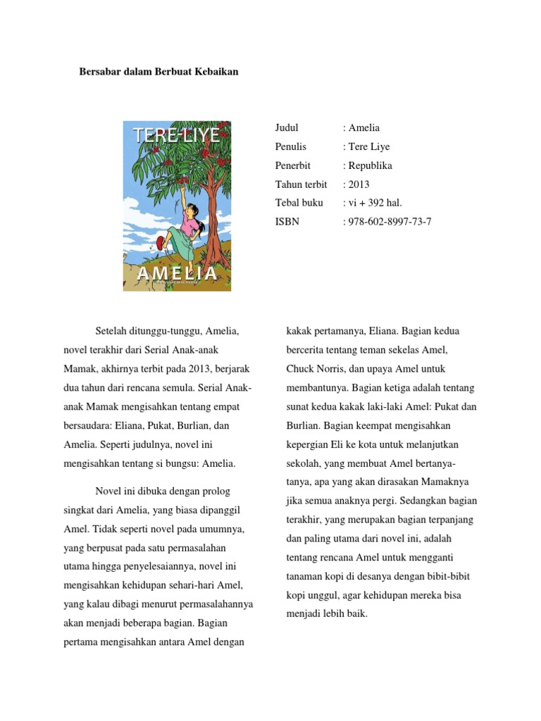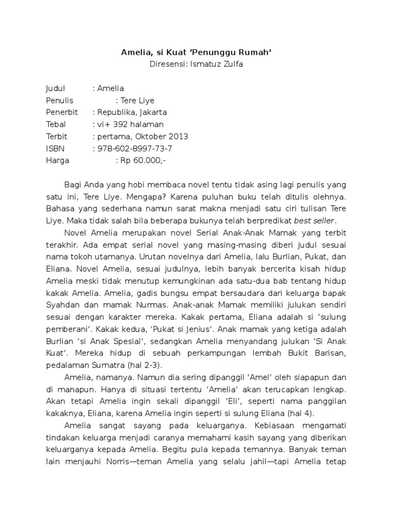 Resensi Novel Amelia, Serial Anak-Anak Mamak Karya Tere Liye Halaman all - Kompasiana.com