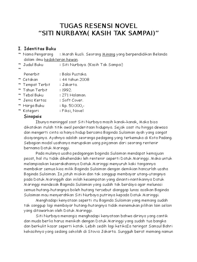 DOC) SINOPSIS NOVEL SITI NURBAYA | Yull Yulan - Academia.edu