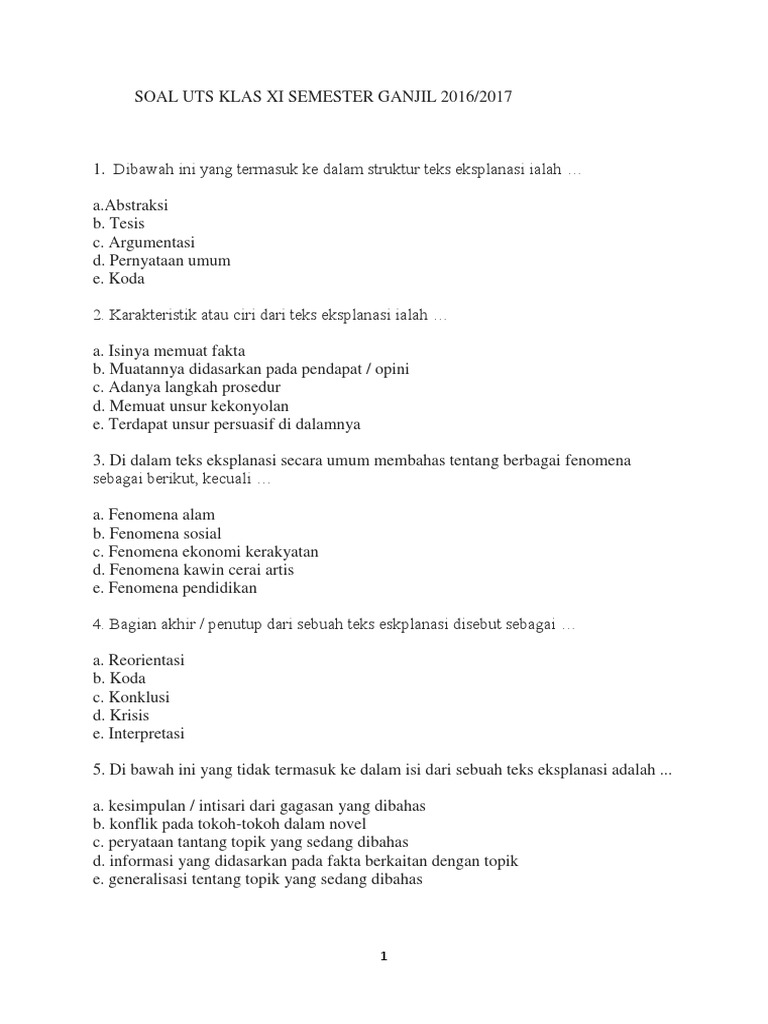 Soal Essay Bahasa Indonesia Kelas 11 tentang Teks Eksplanasi