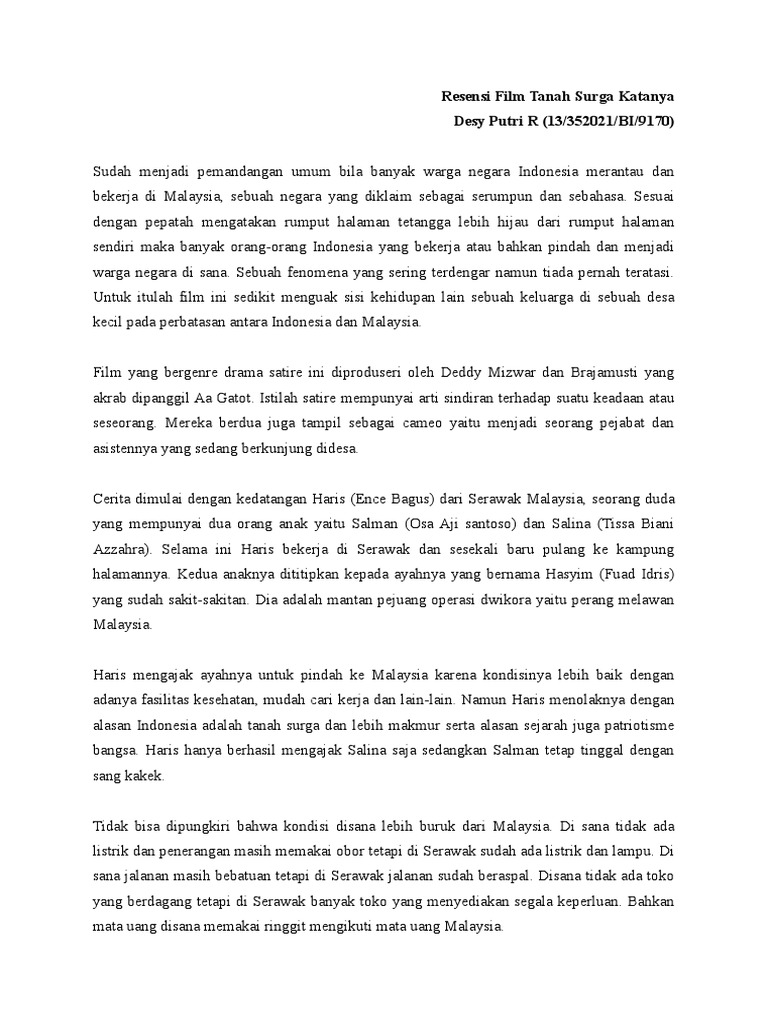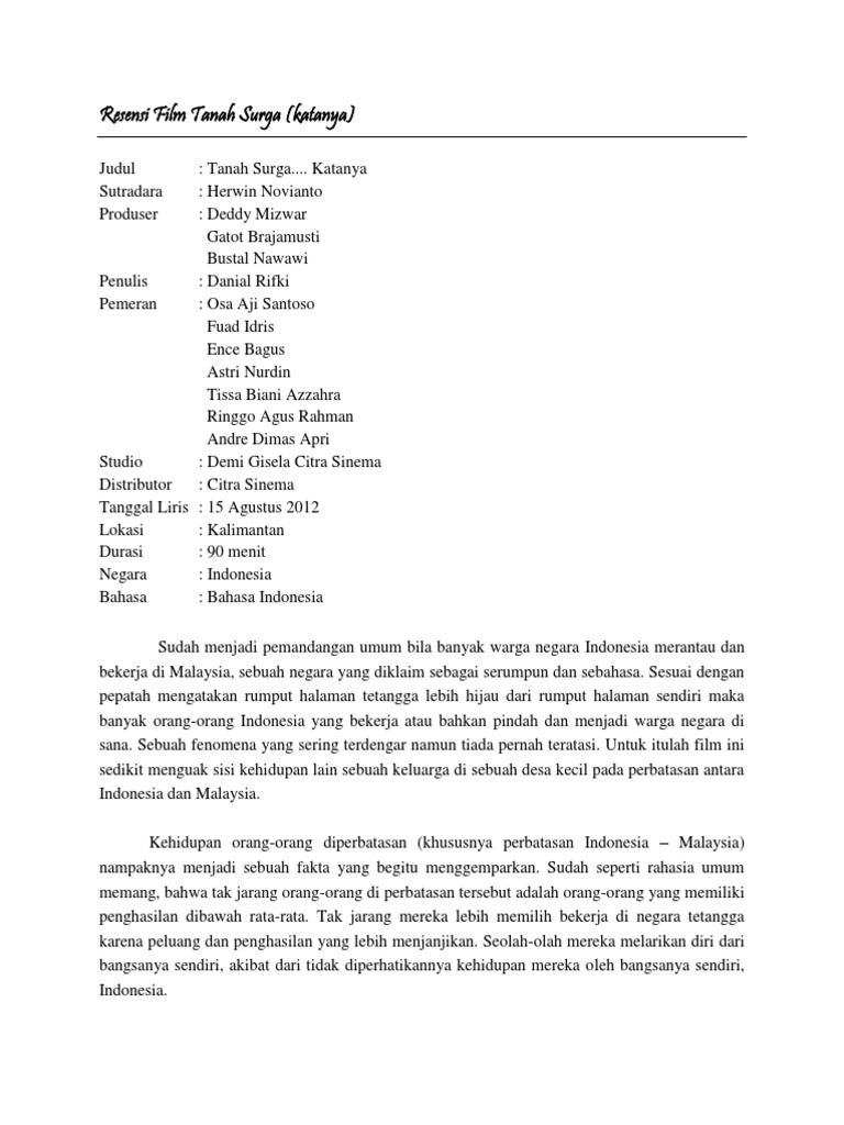 DOC) Teks Ulasan Film Tanah Surga Katanya | Tugas Bahasa Indonesia | Rakhiv Rona - Academia.edu