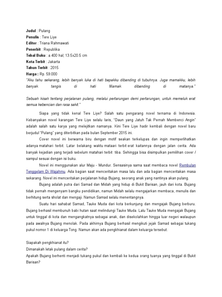 Resensi] Makna “Pulang” Karya Tere Liye Halaman all - Kompasiana.com